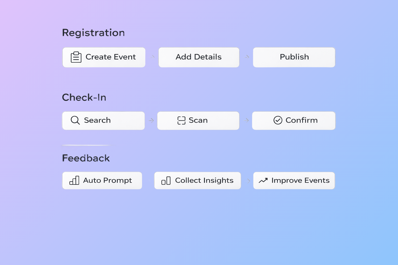 The goal was to design a centralized platform that simplifies event operations from registration to post-event feedback while reducing the need for manual coordination and additional staffing.